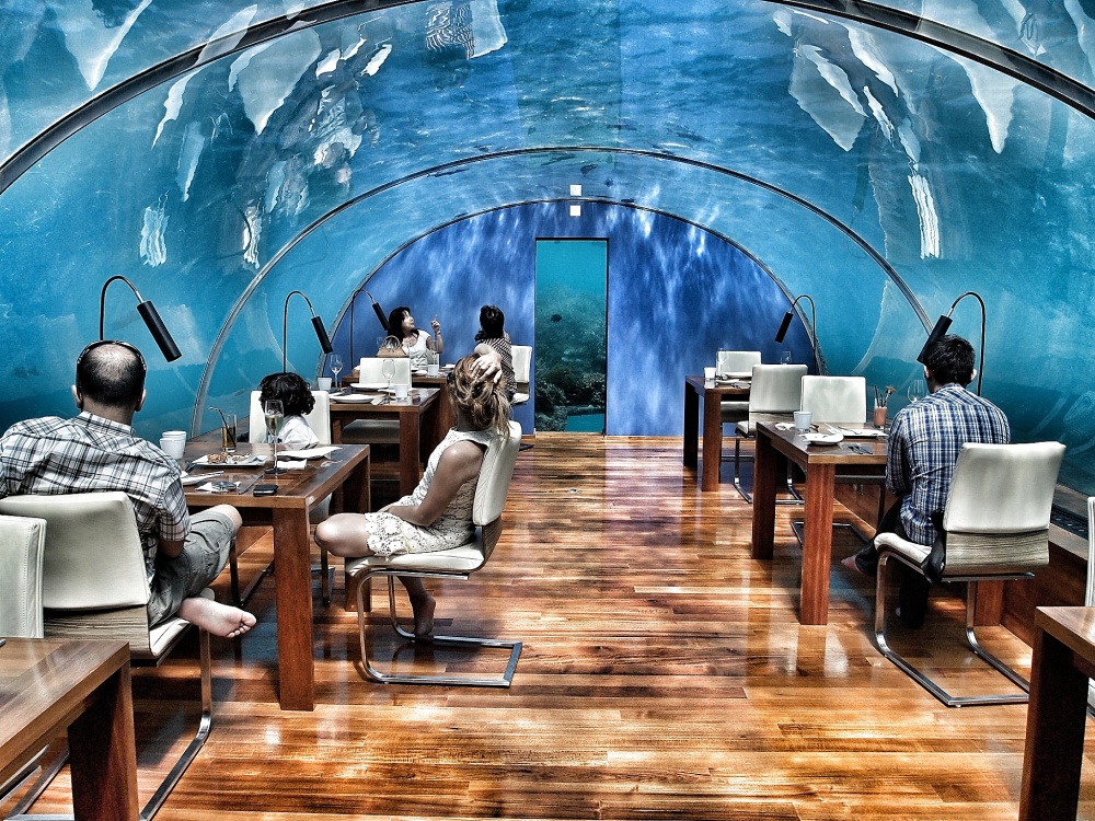 This beautifully designed resort is located across two islands of the Maldives, which are accessible by seaplane from Male. The place comes with an underwater restaurant, treetop eatery, gym, salon and bars. The underwater place remains open every day. To reach the place, you will have to first travel by a speedboat and then go through three-tiered staircases.