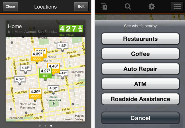 Developed by YellowPages.com, Gas Guru can be used in a multitude of different was. The first way that the app user might elect to the use the app is to program in frequently visited locations, looking for gas in those areas. For example, someone who commutes to the office each day would likely want to enter both his home address and his office as frequent locations. Using this information, he can check the prices at these locations with just the simple touch of a finger, making it easy to see whether it is more cost efficient to fill up near home or the office.