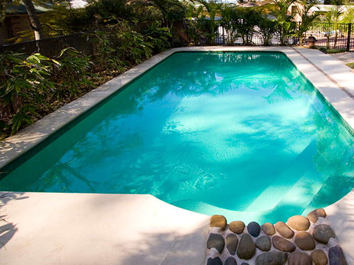 Natural organic contaminants, such as nitrogen and ammonia, are bound to build up in your concrete pool over time. They are likely to interfere with your chlorine, breaking it down to produce chloramines, those nasty things that produce the typical chlorine smell. In other words, if you can smell chlorine, there is not enough of it in your pool. Superchlorinating (or ‘shocking’) your pool once a week brings the chlorine levels back to normal and makes this smell disappear.